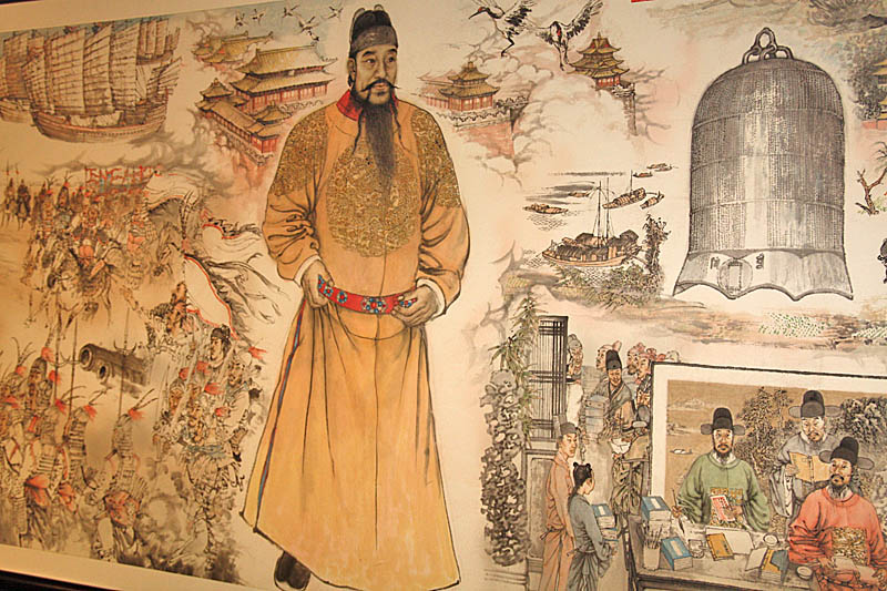 e terzo imperatore della dinastia stessa. Il clima si è fatto ancora più torrido quando varchiamo l'ingresso di quella che è anche chiamata Tomba della Longevità. Nella pagoda una grande statua raffigura l'imperatore, che verrà ricordato come colui che diede lustro e fama alla dinastia Ming, assiso sul trono,