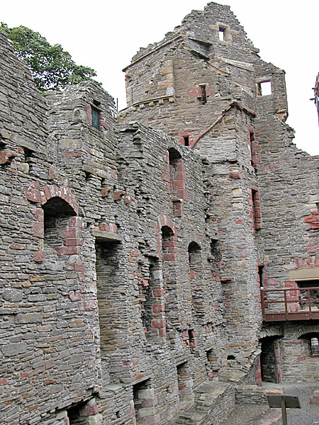 iniziata nel 1600 dal conte Patrick Stewart, non venne mai completata del tutto per mancanza di fondi. Della struttura originale rimane gran parte dello scheletro in pietra, tra cui spiccano le sagome degli elementi che ne modellavano l'aspetto interiore ed esteriore: le antiche porte con i loro artistici architravi, i grandiosi camini, le sagome delle finestre, le numerose torrette di varie fogge che sembrano quasi sospese nel vuoto.