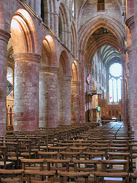 Prima di entrare facciamo un giro intorno alle sue massicce mura di mattoni rossi, un prato verde ben curato custodisce un antico cimitero con suggestive lastre in pietra scura infisse nel terreno. L'interno è sobrio come tutte le cattedrali gotiche, anche se non manca certo di fascino.