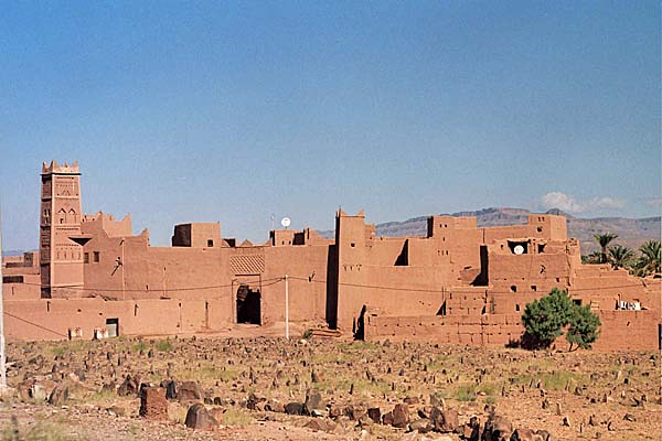 Paesaggi nella valle, una kasbah dietro ad un cimitero islamico